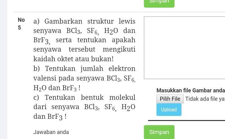 Gambarkan Struktur Lewis Dan Tuliskan Rumus Molekul Senyawa Yang Dapat Dibentuk Oleh Pasangan Unsur Brainly Co Id from id-static.z-dn.net Senyawa yang akan kita gambarkan struktur lewisnya pada poin ini adalah senyawa kovalen sederhana seperti. Gambarkan struktur lewis dan struktur molekul dari hcl dan h2o na h 1 o 16 cl 17 brainly co id. Jan 14, 2019 · gambarkan struktur lewis dari reaksi tersebut. More images for gambarkan struktur lewis dari molekul h2o » Hcl, h2o, nh3, ch4, co2, co. Ada berapa dei dan deb dalam molekul h2o dan so2? Coba gambarkan struktur lewis molekul dari h2o dan so2? Daftar struktur lewis senyawa kovalen sederhana senyawa yang akan kita gambarkan struktur lewisnya pada poin ini adalah senyawa kovalen sederhana seperti: