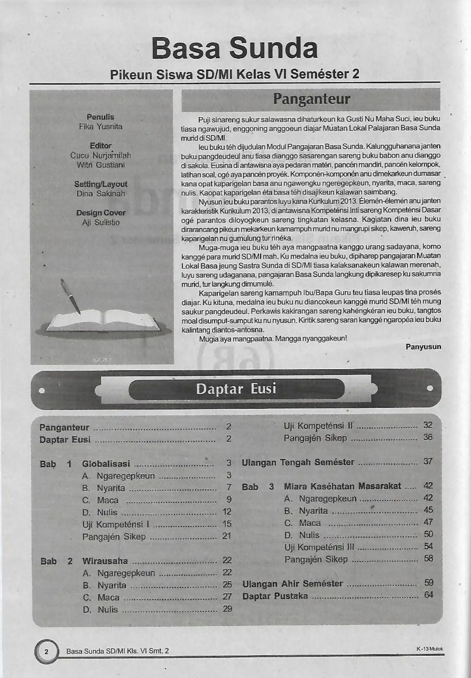 Materi Bahasa Sunda Kelas 6 Semester 2 - Materi Soal Bahasa Sunda Kelas 6 Sd 2019 Jawabanku Id / Download ki kd muatan lokal bahasa bahasa sunda kurikulum 2013.. Bahasa daerah (sunda) materi pokok: Buku bahasa sunda ini terdiri atas buku guru dan buku siswa lengkap untuk sd kelas 1,2,3, 4, 5, 6. In the morning amanda always sweep the yard kunci jawaban. 12.soal ipa kelas 3 sd semester 2. Materi bahasa sunda kelas 6 pangajaran 6 kecap kaayaan sipat.